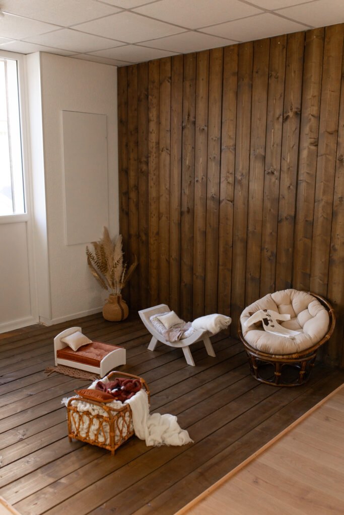 La deuxième pièce est dédiée aux portraits de grossesse, famille, qui permet d’avoir un espace encore plus confortable. La troisième me sert de stockage.