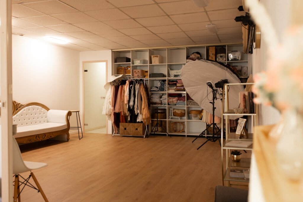 Chaque studio photo est équipé pour votre confort et le mien bien sûr. Il y a une multitude d’accessoires, de robes de créateurs, de décoration afin de varier les décors. Un espace spécial bébé est dédié, avec tout le nécessaire, pour changer bébé, et être à l’aise. C’est également au studio que vous verrez tous les supports photo exposés, pour vous permettre de faire le bon choix.